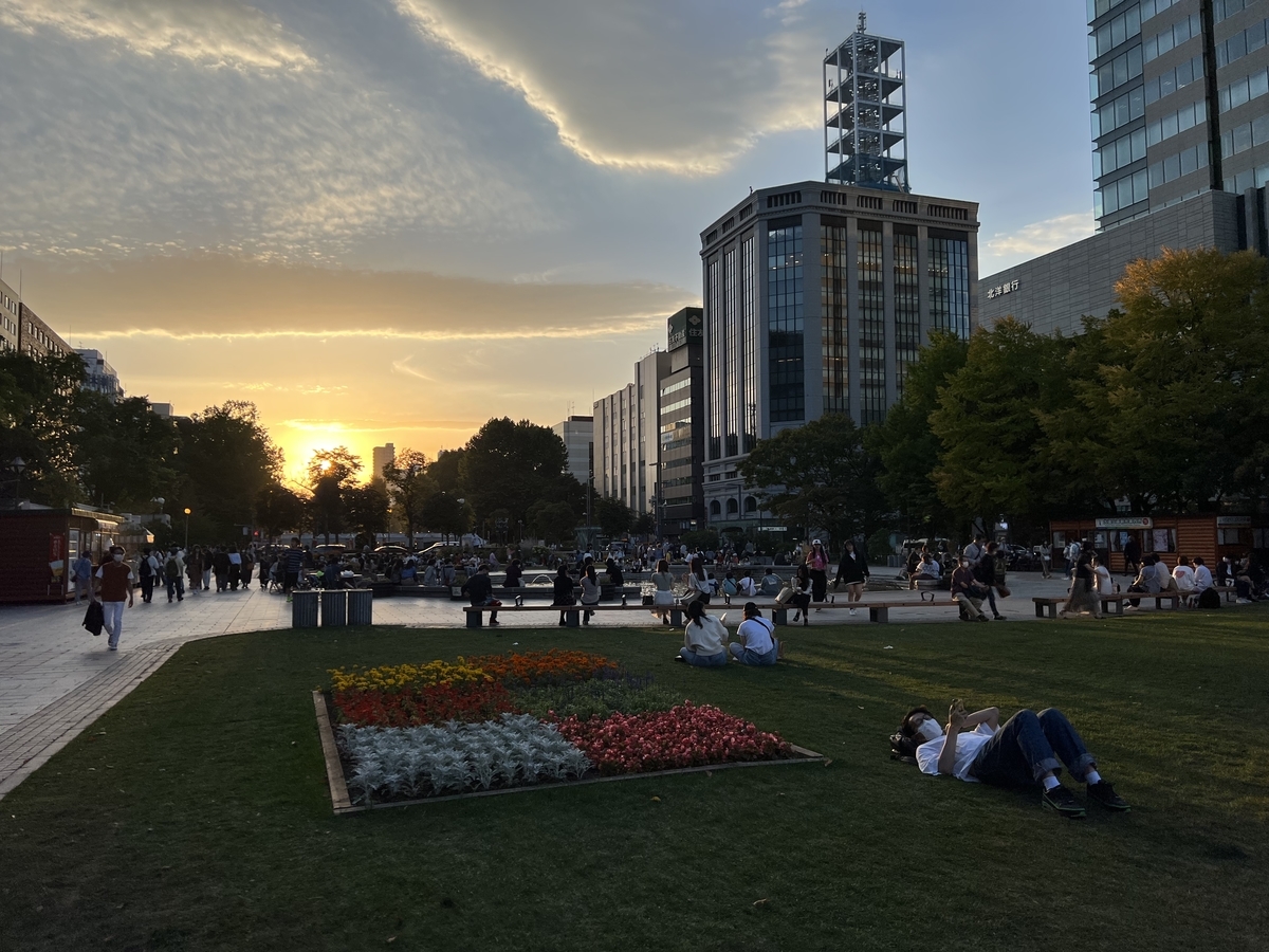 大通公園は夕焼け時です。先の時計台の写真を見て頂くと、時刻はまだ4時台。北国は陽が沈むのが早いんですよね。ちなみにこういう逆光はもはやiPhone最強ですよね。一眼で暗めに撮影してRAW現像した方が自然に仕上がるというのは同感なんですが、スマホは撮影した瞬間にこのレベルになっちゃうわけですからね~。