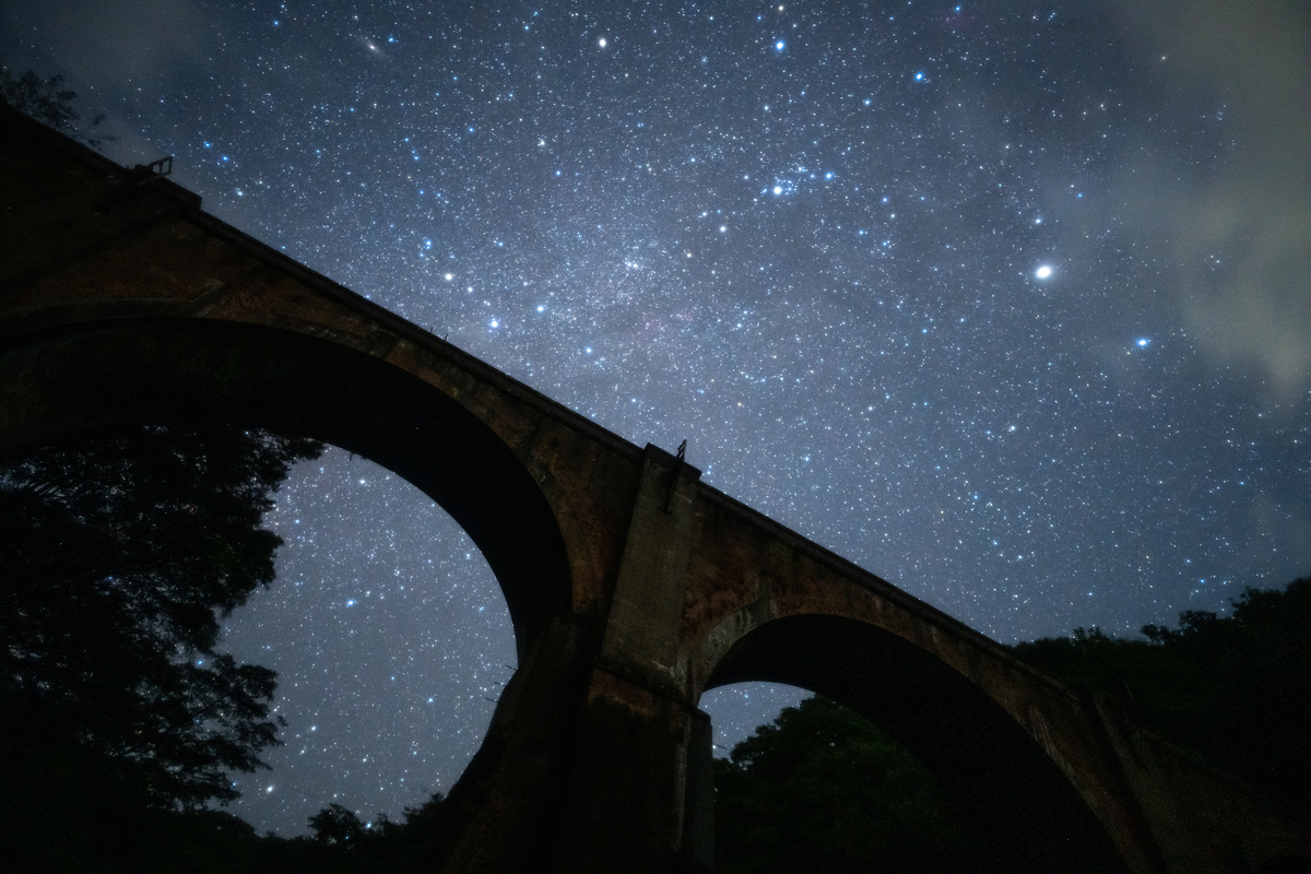今回の写真はこの上に登って峠を見下ろした構図です。9月でしたがもうオリオン座やふたご座が出ていて季節の移ろいを感じました。まだまだ青々とした木々とのコラボレーションが面白いなぁと思いながら撮影しました。