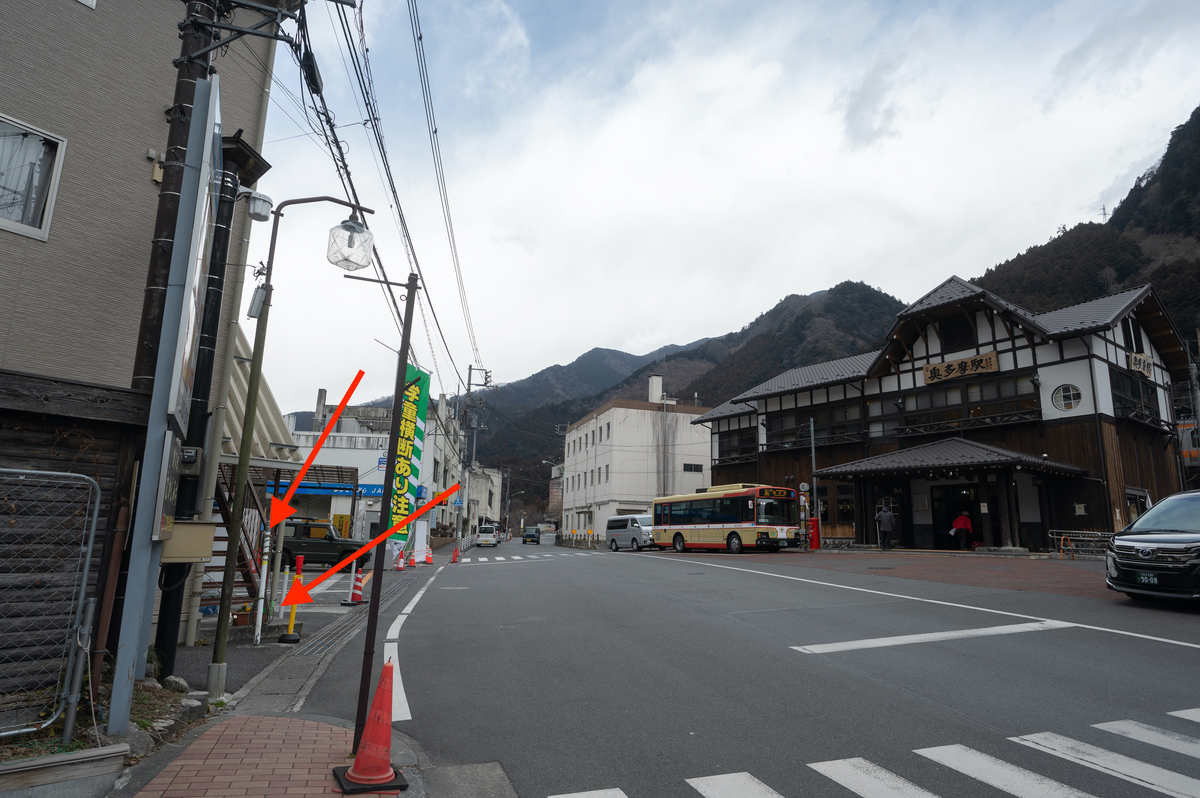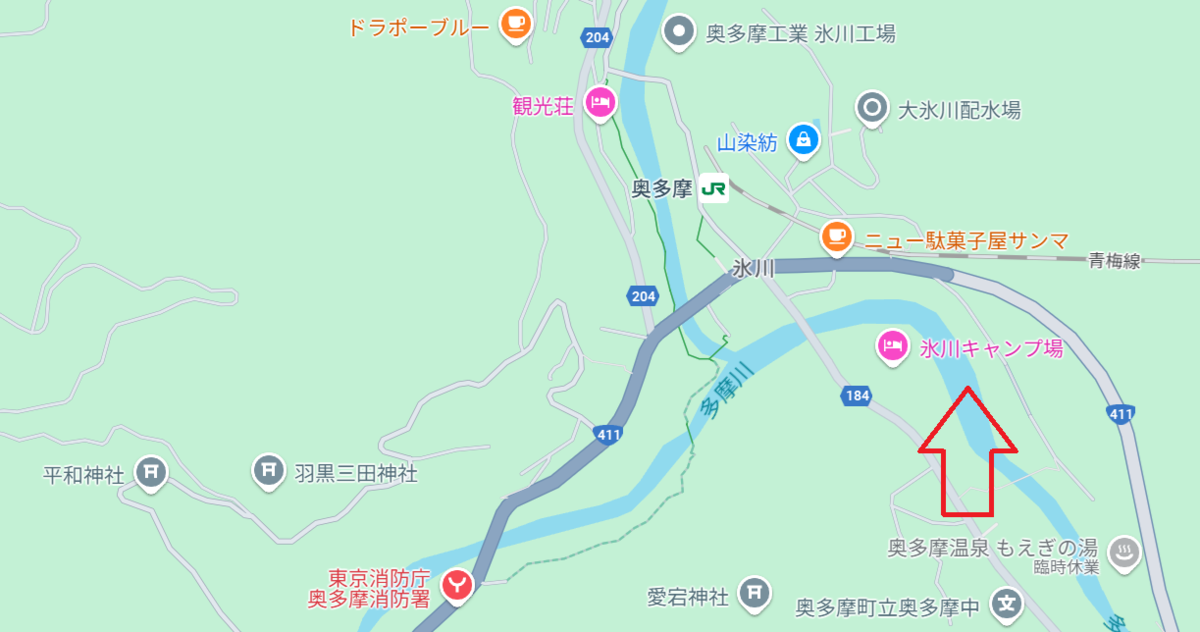 見ての通り、奥多摩駅を下って、橋を渡ればすぐです。