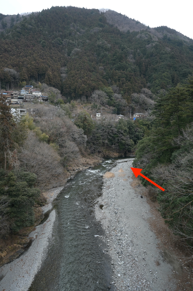 ここから階段をどんどん降りて行けば河原に到着できます。夏はかなり人気のキャンプ場ですが冬はさすがに人は少なめでした。